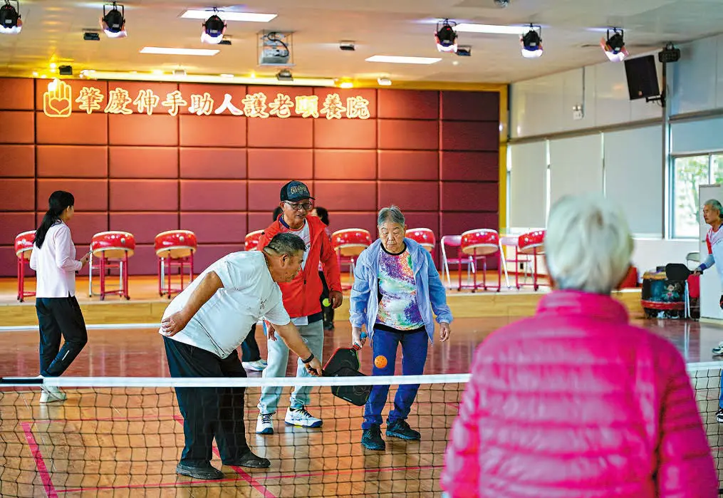 ▲ 近年北上養老熱潮興起,伸手助人協會也組織了長者們其肇慶院舍短住體驗;記者到訪當天,院舍正在舉行匹克球活動。 (李俊杰攝)