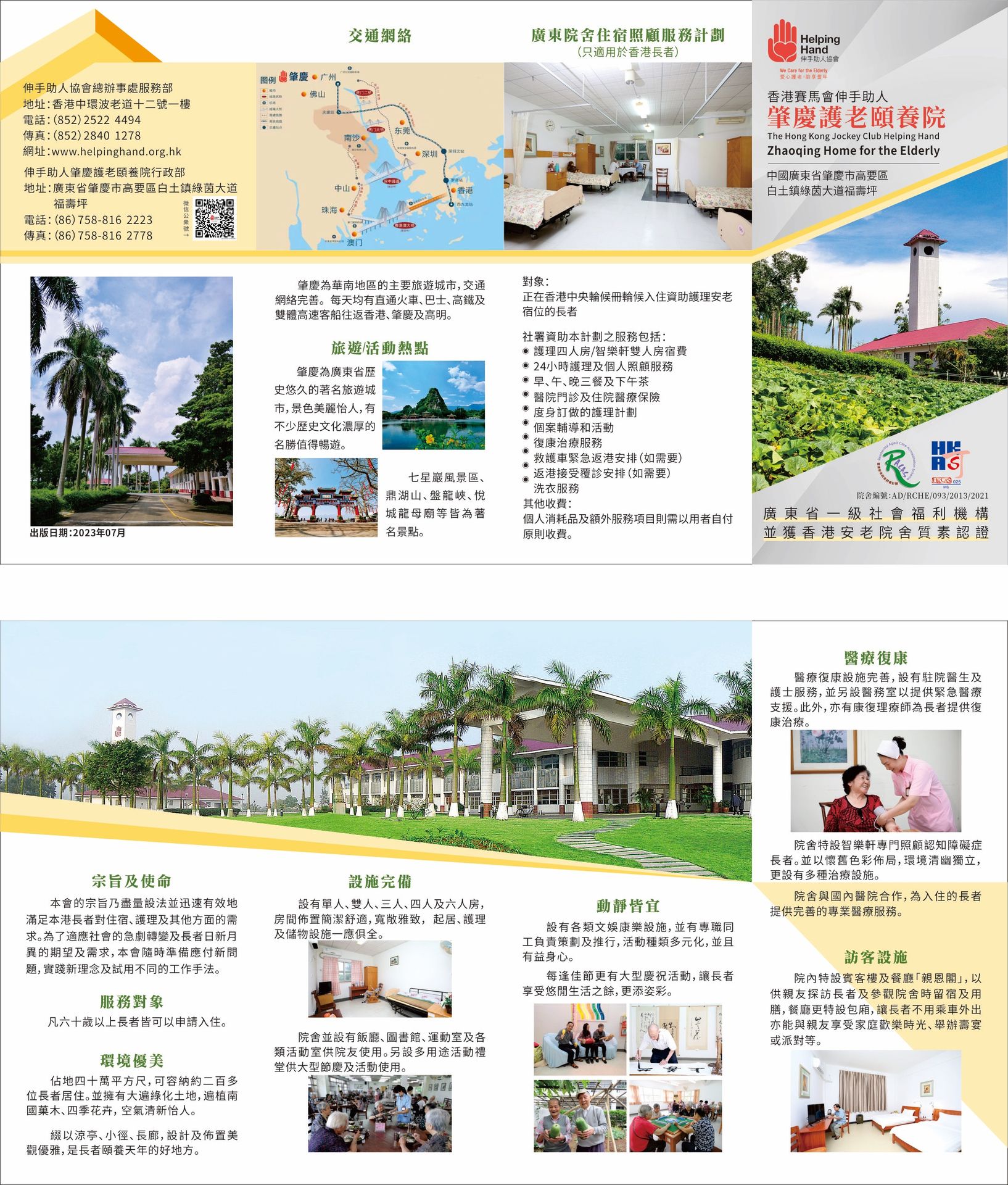 Hong Kong Jockey Club Helping Hand Zhaoqing Home for the Elderly Service Enquiries:25224494 (HK) or (0758) 816 2223 (Mainland China)