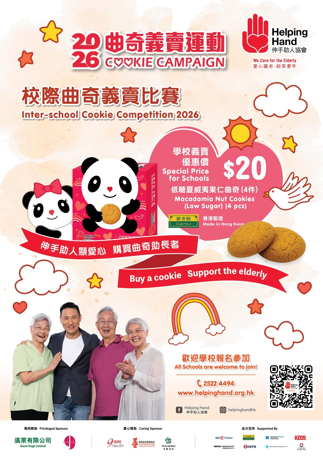 伸手助人协会诚挚邀请全港学校参加我们的校际曲奇义卖运动比赛。通过在校内销售曲奇,学生不仅能为有需要的长者筹募善款,更能亲身参与义卖的筹划与推动,体验助人的喜悦。